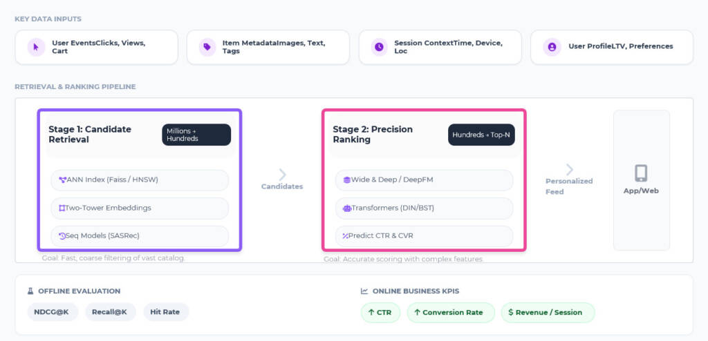 - Two-Stage Model Training Retrieval + Ranking загваруудыг тусад нь сургах